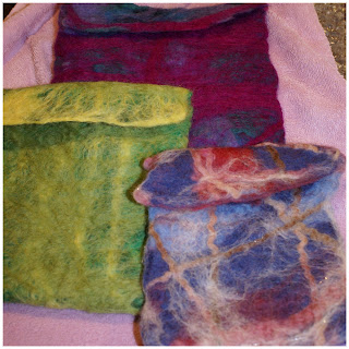 We made felted pouches at craft night this month. The conversation was great, and the finished product wasn't bad, either!!
